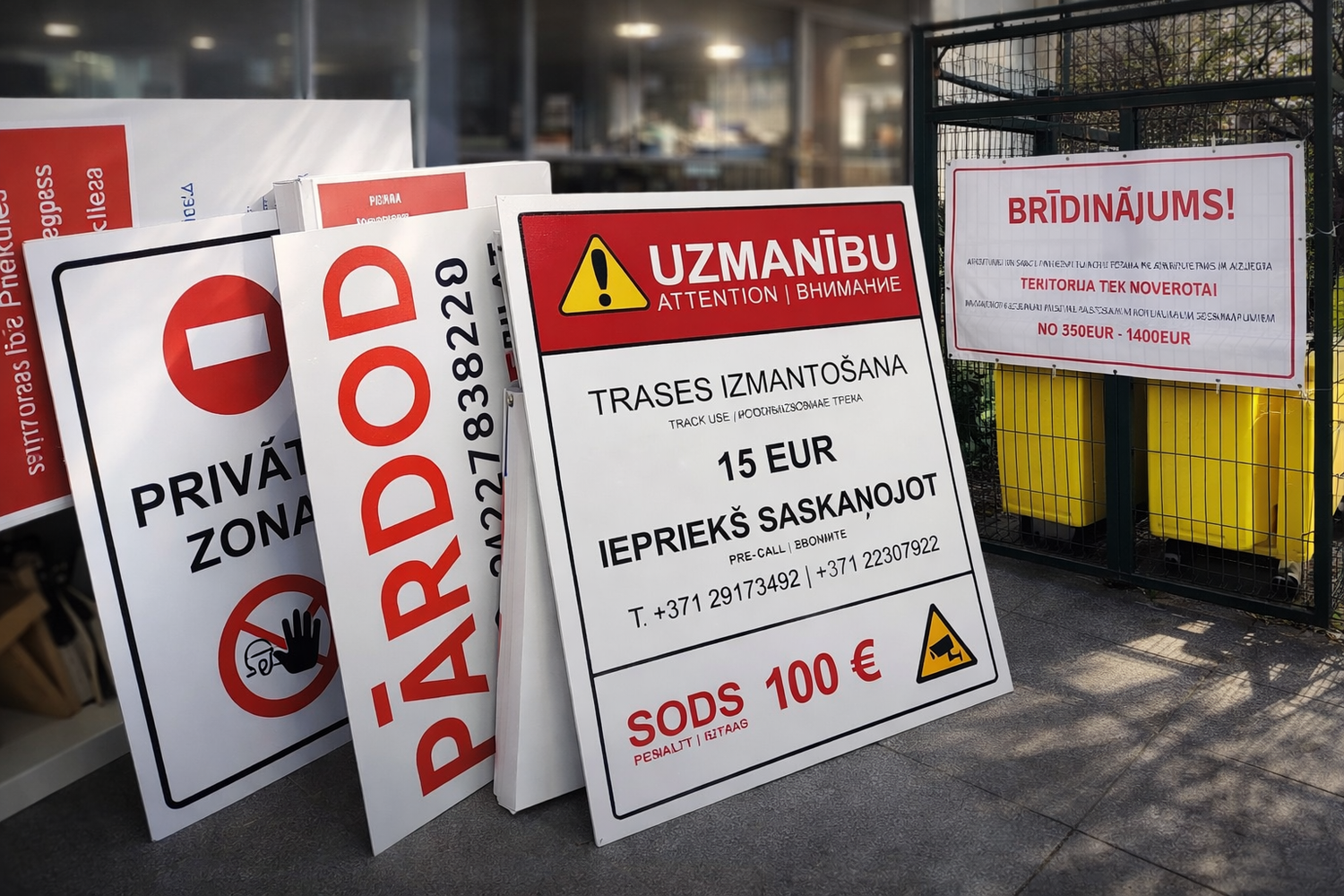 Piedāvājam izgatavot vides reklāmas izkārtnes, norādes, informatīvos stendus, plāksnes u.c. no dažādiem materiāliem - backlit films, organiskais stikls, putukartons, daudzslāņu kartons, komatex, polikarbonāts, alumīnija kompozītpaneļi. Nodrošinām gan druku, gan aplīmēšanu. Ļoti svarīgi ir izvēlēties atbilstošu reklāmas materiālu. Tā izvēli nosaka kādam mērķim tas tiks paredzēts.